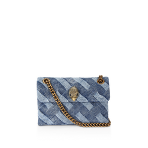 Este mini bolso Kensington está confeccionado en mezclilla con lavado ácido y un estampado en tejido. La cabeza de águila en latón envejecido cuenta con cristales en la solapa frontal. Medidas: 14 cm (alto), 20 cm (largo), 6 cm (profundidad). Caída de la correa cruzada: 119 cm. Caída de la correa para hombro: 77 cm. Correa de cadena en latón envejecido. Cierre de imán dúo oculto bajo la solapa. Placa metálica con marca en latón envejecido en la parte trasera. Capacidad para teléfonos de hasta 7 pulgadas. Pequeño bolsillo interno forrado. Material: Mezclilla. Interior: Forro interior con monograma.