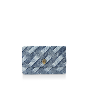 El monedero de cadena Kensington está confeccionado con una tela de mezclilla con un estampado de lavado ácido. La cabeza de águila en latón envejecido cuenta con cristales y ojos de cuentas negras en la solapa frontal. Medidas: 12.5 cm (alto), 19.5 cm (largo), 2.3 cm (profundidad). Caída de la correa: 60 cm. Correa de cadena en latón envejecido. Cierre de botón a presión bajo la solapa. Placa de latón envejecido con marca en la parte trasera. Capacidad para hasta seis tarjetas clásicas. Bolsillo interno con cremallera. Exterior: Mezclilla. Interior: Forro de cuero sintético.