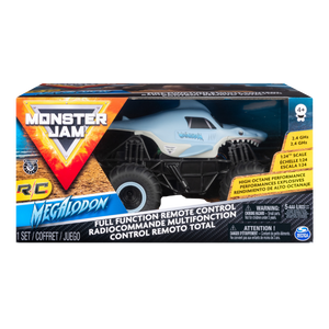 Desde las profundidades del océano prehistórico surge el nuevo y oficial Monster Jam 1:24 Megalodon RC a escala oficial. Este poderoso depredador está a punto de realizar acrobacias épicas; choques locos y golpes brutales!