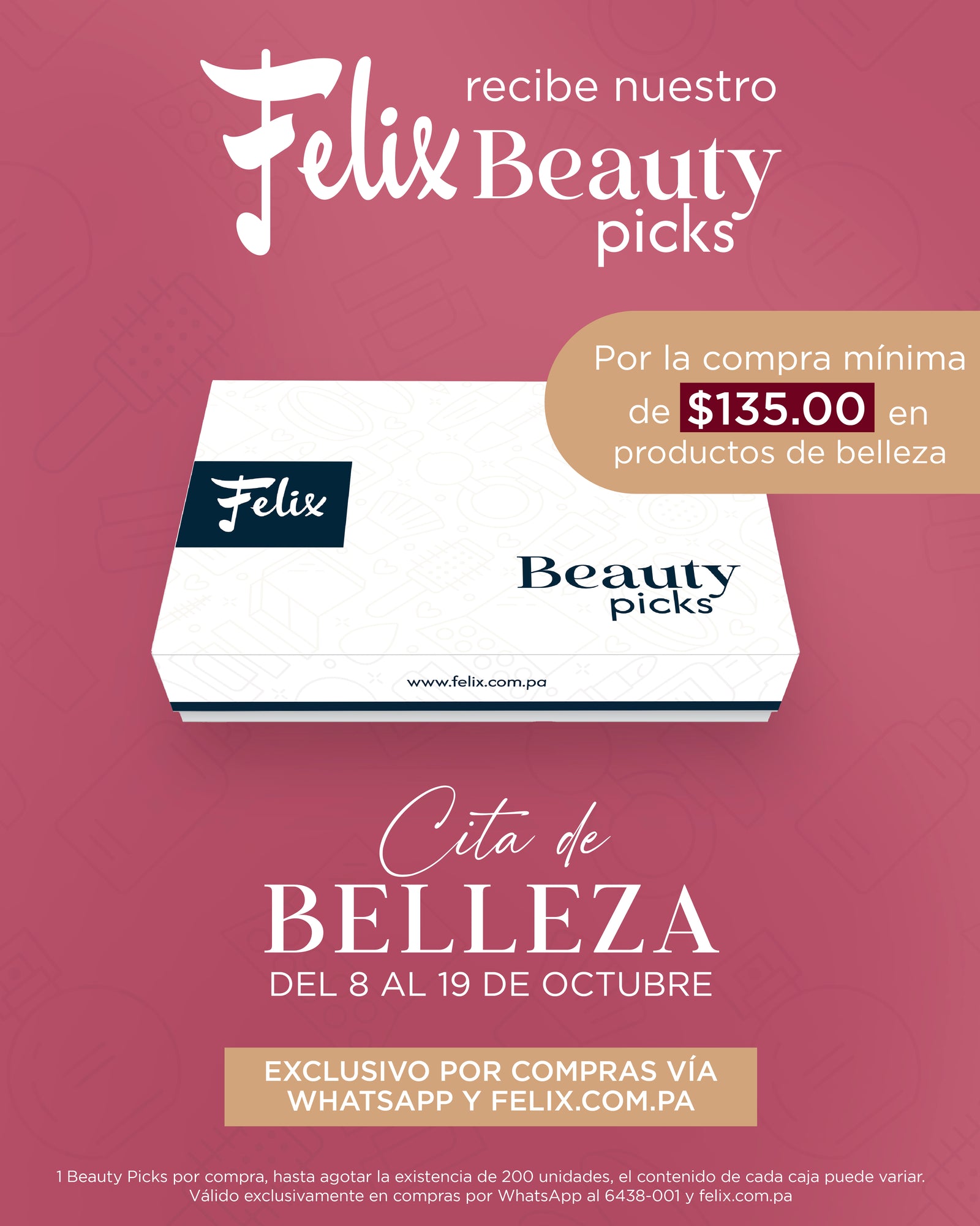 Con cada compra realizada durante tu Cita de Belleza Felix, recibirás obsequios especiales de marcas reconocidas. Algunos de ellos: