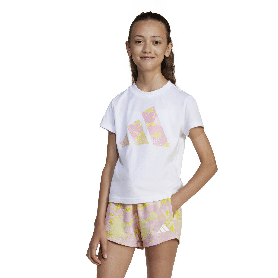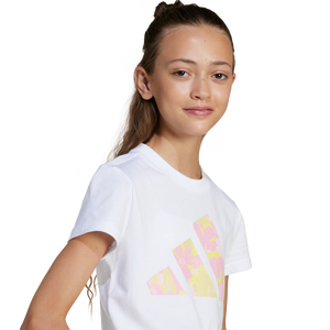 Esta playera adidas para niños está diseñada para llevar tu estilo diario a otro nivel. Confeccionada en tejido de algodón suave, luce un ajuste ceñido perfecto para usar sola o en capas. El gran logo de las 3 Barras está relleno con un colorido estampado floral que le imprime un toque fresco y divertido.