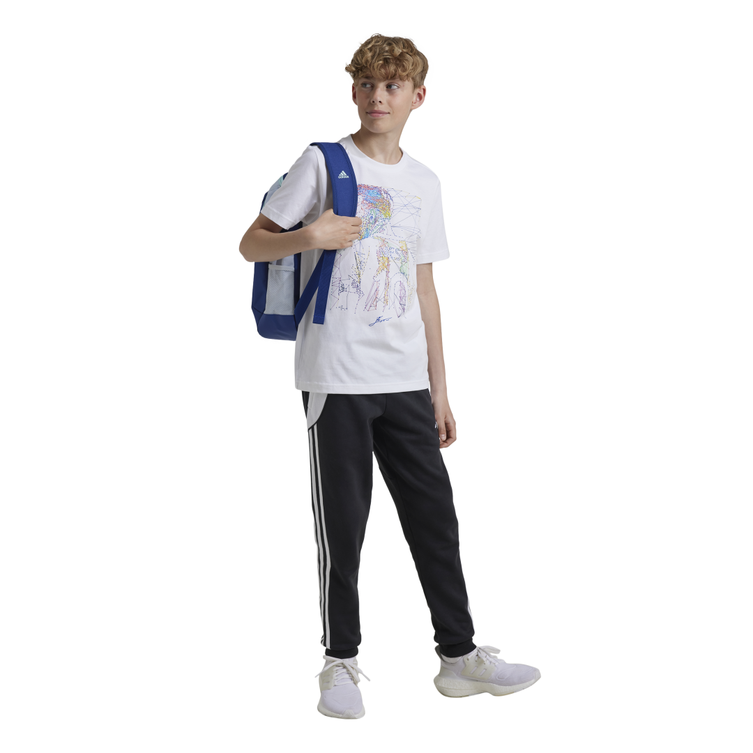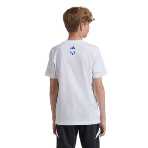 Su jugador favorito, su playera favorita. Los hinchas jóvenes pueden celebrar al MEJOR futbolista con estilo con esta playera Messi de adidas. para niños. Está confeccionada en algodón transpirable que te envuelve con comodidad desde el momento en que se la ponen y luce un llamativo estampado de Lionel Messi en el pecho. Cuando suene el silbato, esta playera de tejido jersey sin duda será la primera que elijan de su guardarropa.