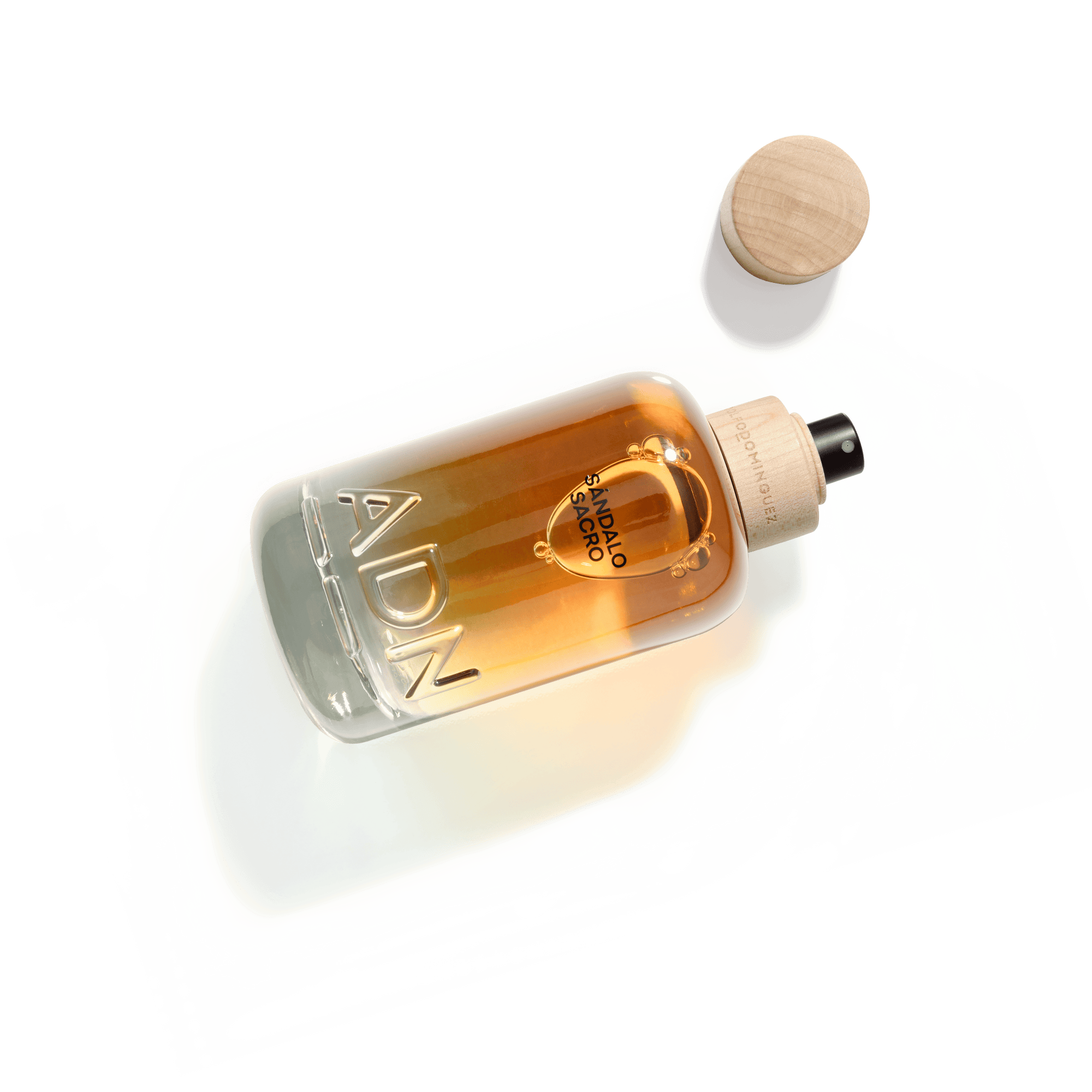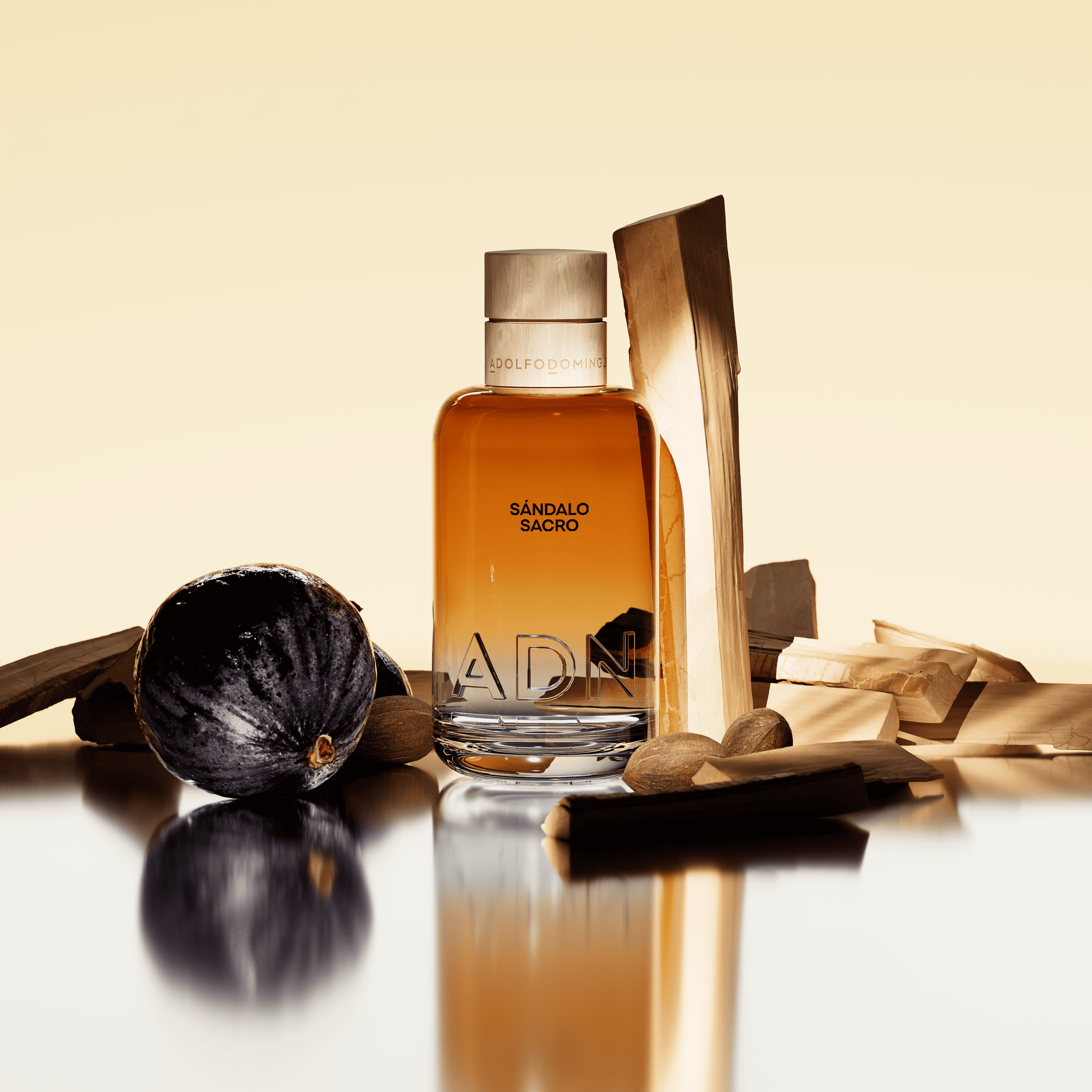 Sándalo Sacro es parte de la nueva colección, ADN, de Adolfo Domínguez. Una colección de Eau de Parfum, genderless, a base de aceites esenciales que potencian tu identidad. Sándalo Sacro, contiene aceite esenciales de