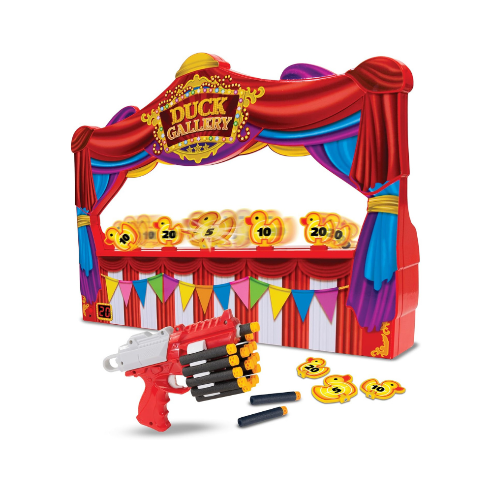 La Electronic Arcade Duck Shooting Gallery es un juego interactivo de tamaño grande (a veces publicitado como "Giant Size" o 28" de ancho) que pone a prueba tu precisión contra el tiempo.