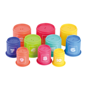 Esta Torre Apilable de Animales y Números de Playgo es un juguete sencillo que mantendrá a los niños pequeños entretenidos durante largos periodos mientras intentan apilar, bajar y volver a apilar los vasos. Los vasos numerados vienen en brillantes y atractivos colores: amarillo, naranja, rojo, azul y verde. Son fáciles de sujetar y colocar uno encima del otro. Gracias a su diseño, solo los números correctos encajarán perfectamente. Cualquier otro vaso será demasiado grande o demasiado pequeño para encajar perfectamente alrededor del vaso anterior en la pila. Esto ayuda a los niños a comprender cómo funciona el apilamiento y mejora su coordinación ojo-mano y sus habilidades mentales. Los vasos apilables están diseñados para niños mayores de 12 meses y están hechos de plástico duradero. Aunque el juego es sencillo, los niños tienden a ser creativos con los vasos y pueden acabar usándolos de varias maneras diferentes para jugar, además de simplemente apilándolos.