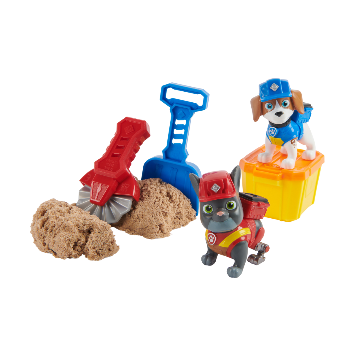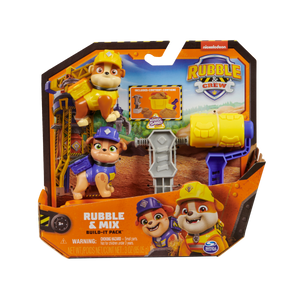 El paquete de 2 figuras de acción Rubble & Crew Rubble and Mix incluye dos coloridos personajes de la serie Rubble & Crew: Rubble y Mix. Este divertido set cuenta con dos figuras de acción de plástico junto con unaactividad de arena cinética "Build-it" para el juego creativo. Este atractivo paquete de 2 inspira el juego de construcción abierto con dos figuras de acción de personajes favoritos de los fanáticos de la serie de televisión Rubble & Crew.