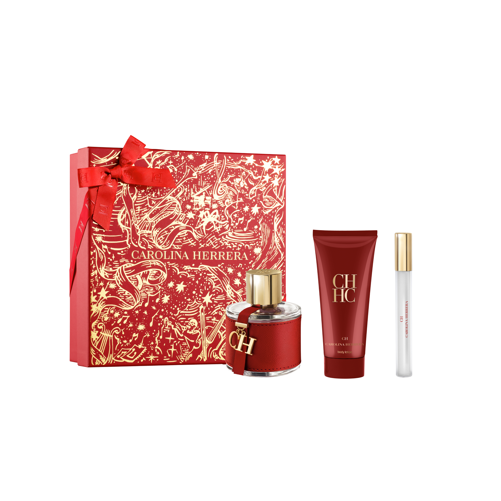 CH Women es una fuerza invisible, el toque final. El equilibrio perfecto entre frescura y relajación, esta optimista fragancia aporta elegancia contemporánea a cualquier momento. Este set de regalo de tres artículos contiene CH Women Eau de Toilette (100 ml), Megavaporizador (10ml) y Loción Corporal (100 ml), una suntuosa y nutritiva crema que deja la piel suave y con un perfume encantador.