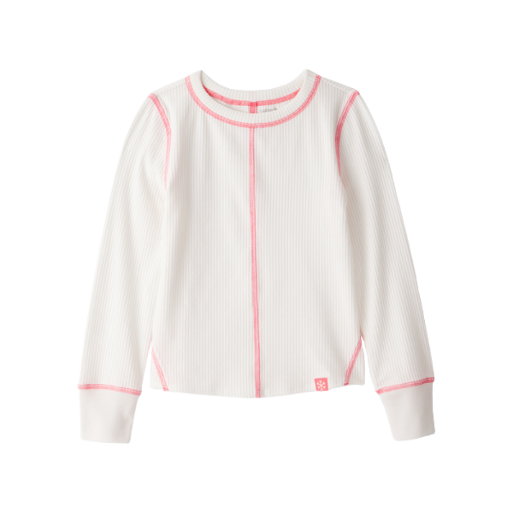 Camiseta activa de manga larga Carter’s para niña en color marfil. Ligera y cómoda, ideal para actividades diarias y movimiento constante.