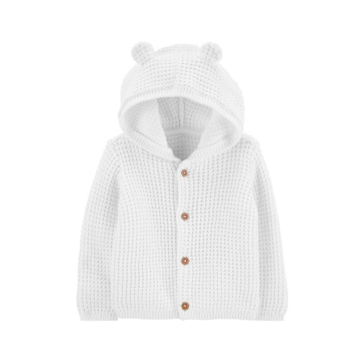 Este encantador cardigan con capucha presenta un diseño frontal con botones para un fácil uso y añade un toque juguetón con orejas 3D de peluche en la capucha. Fabricado completamente en algodón, proporciona comodidad y estilo para tu pequeña.