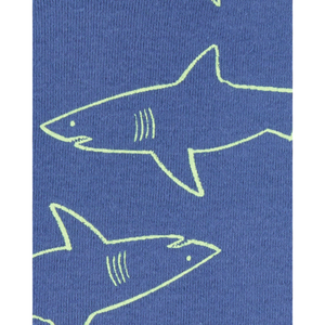 Hecho de 100% algodón que es suave y cómodo, incluso cuando se mueve la hora de acostarse. Los gráficos de tiburones traen la diversión, mientras que el estampado de la tabla de surf la relaja.