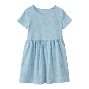 Deja que tu pequeña brille con el vestido de manga corta con estampado floral de mariquitas para niña pequeña en color azul. Este encantador vestido combina comodidad y estilo, perfecto para jugar con amigos o para salidas familiares. Confeccionado con tela suave, garantiza comodidad durante todo el día, permitiendo que tu hija se mueva con libertad. Los adorables estampados de mariquitas y flores le dan un toque divertido que hará sonreír a todos. Su diseño fácil de poner hace que vestirla sea pan comido en las mañanas ajetreadas. Además, las mangas cortas la mantienen fresca en los días más cálidos. Confía en una marca que entiende las necesidades tanto de los niños como de los padres, haciendo que cada momento sea especial.