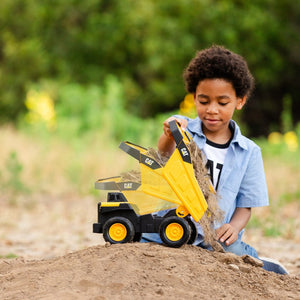 Un gran trabajo requiere equipo pesado. Domina la obra con el Camión Volquete de Acero Mighty Cat, que mide unas impresionantes 20" de largo. Diseñado y construido cuidadosamente con acero de alta resistencia y ruedas enormes, este robusto vehículo es lo suficientemente resistente como para afrontar incluso los trabajos más exigentes. Tú tienes el control: llena la robusta plataforma, condúcelo a su destino y usa la plataforma real para descargarlo. Las máquinas Cat auténticas son conocidas por su alta calidad; estos juguetes no son la excepción. Apto para niños a partir de 3 años.