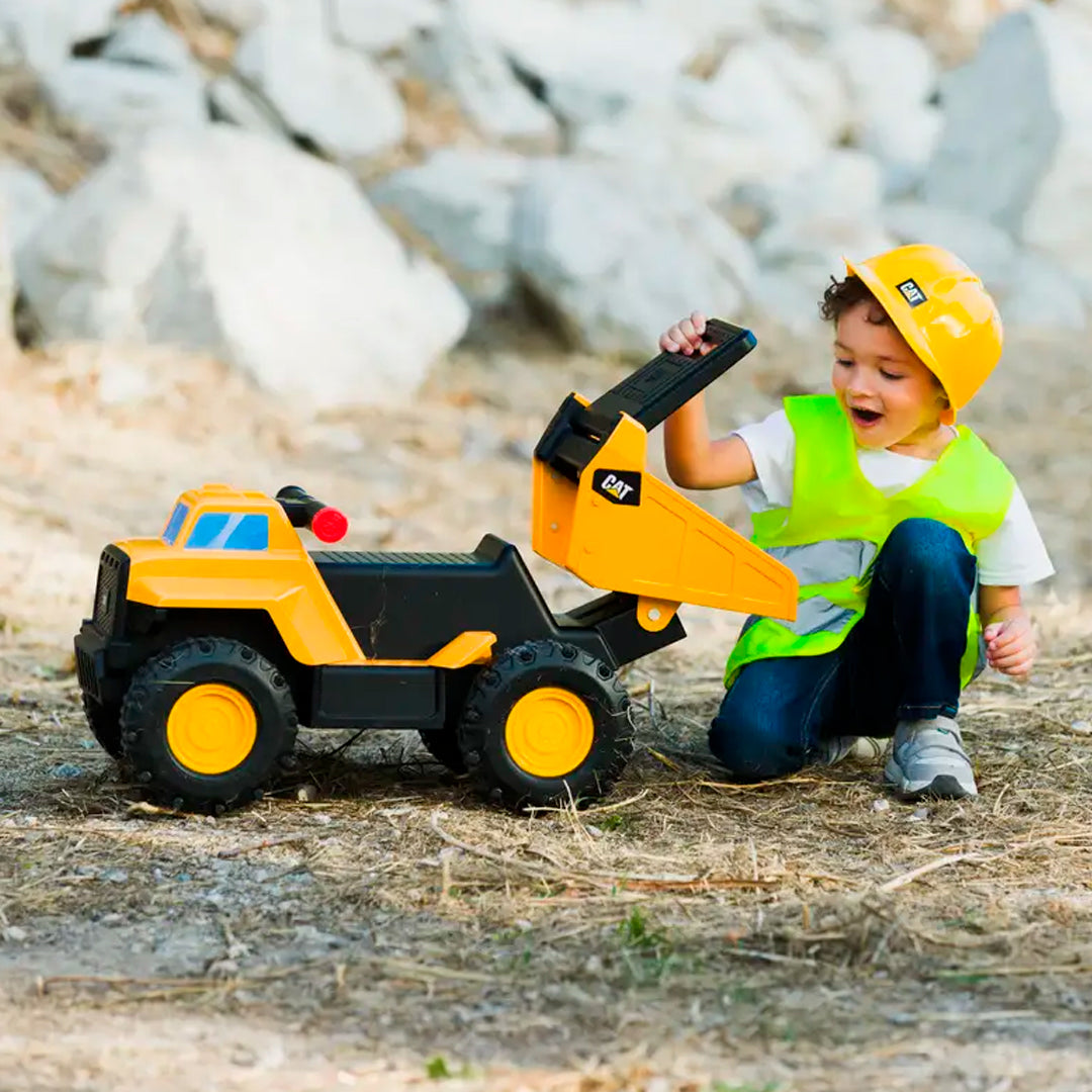 Nombrado uno de los mejores juguetes navideños de Toy Insider 2024, el nuevo camión volquete de acero Cat Play and Ride con luces y sonidos ofrece el doble de emoción. Este vehículo 2 en 1 se transforma de un camión volquete de juguete en un vehículo de pie a piso. Fabricado con una cama de acero resistente, está construida para durar y lista para años de juego robusto y práctico. Para transformar el camión volquete, simplemente levanta la parte superior del camión volquete, tira de las asas hacia arriba y desliza hacia atrás la cama del camión, para la mejor experiencia de juego y conducción. Diseñado con asas de fácil agarre, los niños pueden impulsar el camión hacia adelante o hacia atrás usando sus pies, añadiendo un elemento activo a sus aventuras de construcción. Además, con la luz de la zona de construcción y los efectos de sonido controlados por una perilla en el mango, pueden sumergirse completamente en las vistas y sonidos del lugar de trabajo. Las máquinas Real Cat son conocidas por su alta calidad y estos juguetes no son diferentes, construidos para soportar los elementos resistentes en interiores o exteriores. Adecuado para edades de 18 meses en adelante.