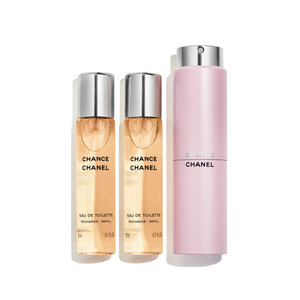 Una fragancia floral en un frasco de líneas redondeadas. Imprevisible, siempre en movimiento, CHANCE le arrastra hacia un torbellino de felicidad y fantasía. El vaporizador para el bolso «TWIST AND SPRAY» se lleva atodas partes para reavivar su estela a lo largo del día… Una cita olfativa con las suerte.
