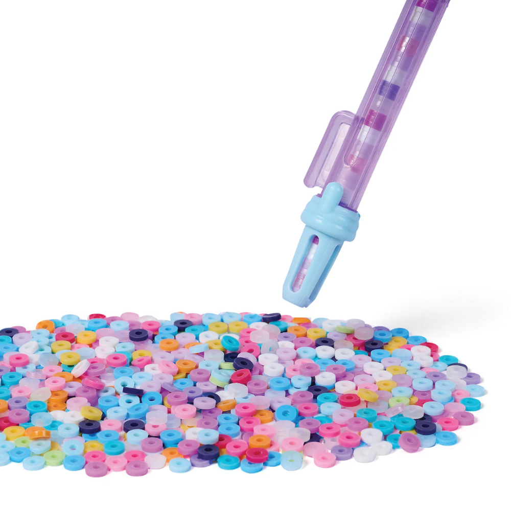 Juguete mágico de pulsera con cierre: las niñas pueden apilar, enhebrar y encajar fácilmente con el estudio de pulseras Stack´d Heishi. Elige cuentas, suéltalas en la cuerda y presiona el botón para cerrar las pulseras en la muñeca Bolígrafo de cuentas fácil de usar: recoger cuentas es muy fácil; empuja el bolígrafo hacia abajo en la parte superior de cada cuenta y mira cómo se apila el diseño personalizado en el interior. Rellena el símbolo de medición del tamaño de la muñeca y acopla el bolígrafo en el estudio.