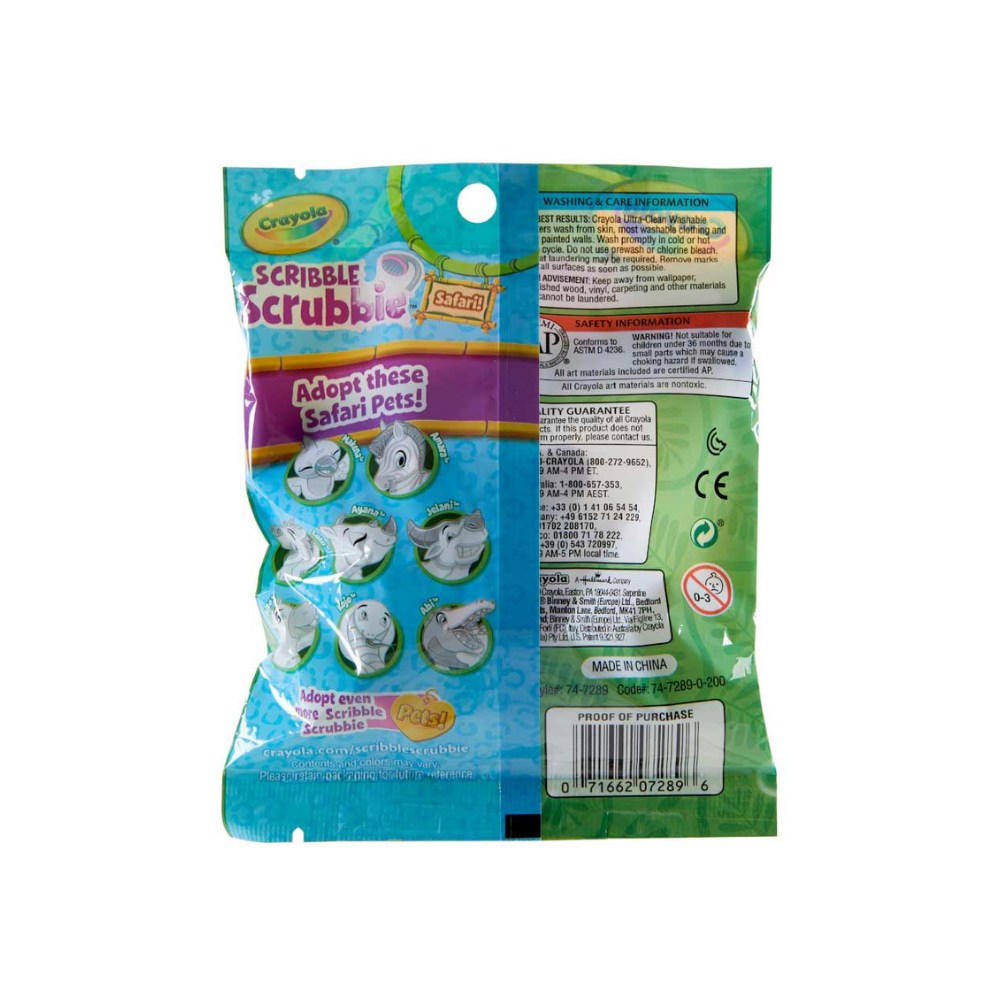 Cada animal viene en una bolsa individual e incluye un animal de safari, dos marcadores Scribble Scrubbie y un pincel. Nuestra colección de animales de safari incluye un pájaro, una cebra, un jabalí, un búfalo, un rinoceronte, un hipopótamo, un cocodrilo o una cobra. ¿Qué mascota añadirías a tu colección Scribble Scrubbie con un solo paquete de estos adorables animales de la selva? ¡Puedes decorar cada animal como quieras, lavarlo y colorearlo! Los juegos y juguetes de animales adicionales se venden por separado. Ideal como recuerdo de fiesta, regalo de Halloween o regalo navideño para niños y niñas. ¡Combínalo con el juego de bañera para disfrutar de aún más formas de jugar!