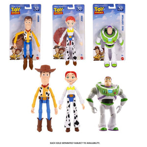 ¡Estas figuras de acción de los personajes principales llevan la diversión y la amistad de Toy Story de Disney y Pixar a tu hogar! Con diseños auténticos a escala de 7 pulgadas de alto y 13 articulaciones móviles, los fans podrán revivir sus escenas favoritas de todas las películas. Todas las figuras están diseñadas con su aspecto característico. Cada una se vende por separado y está sujeta a disponibilidad. Los colores y las decoraciones pueden variar.