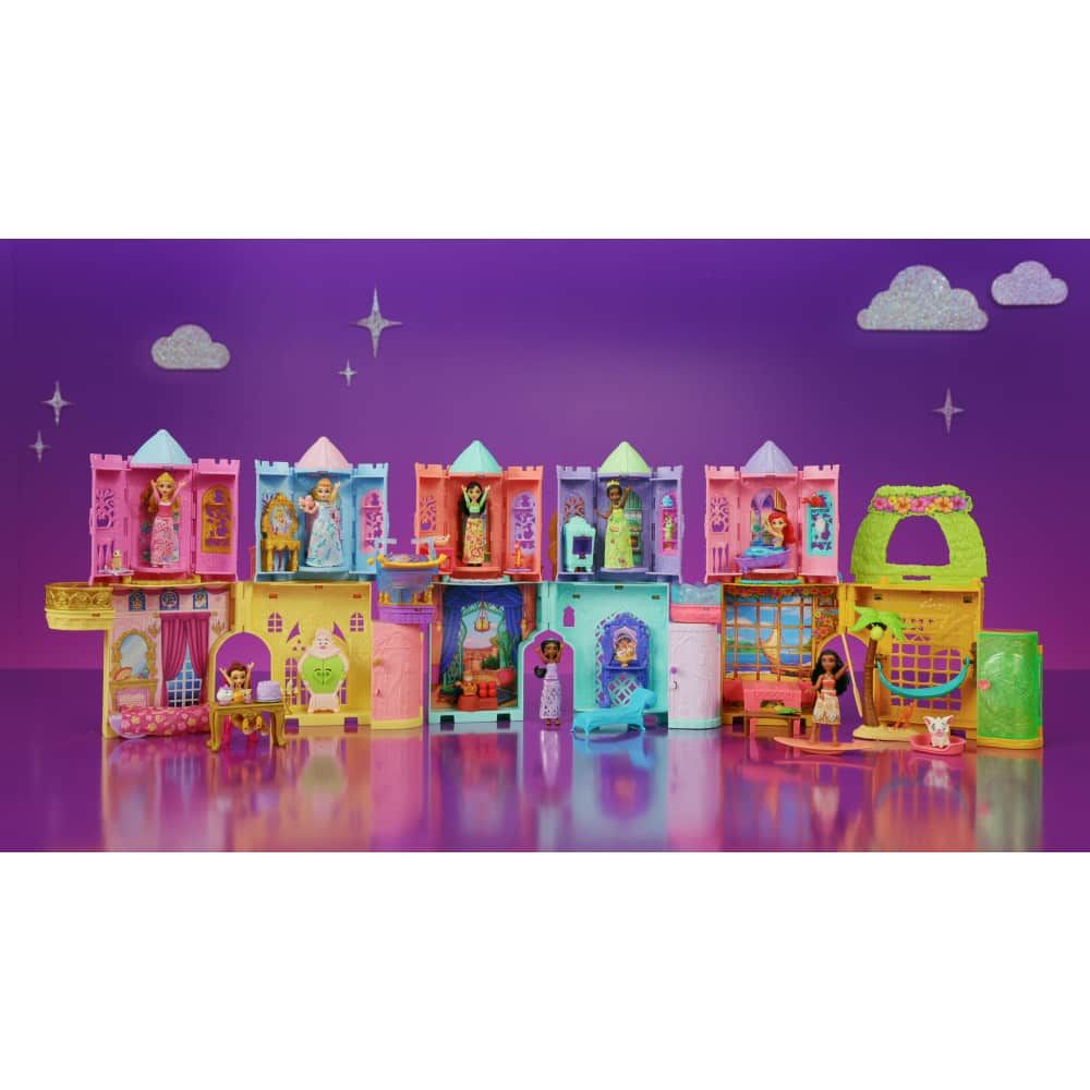 Inspirado en Moana de Disney, este set de juego apilable captura la belleza de la isla de Moana. El set es una adorable casa de muñecas en escala pequeña, que se abre para revelar múltiples áreas de juego, además de una minimuñeca Moana de 3.5 pulgadas, 1 animalito, muebles y mucho más. Incluye un asa para jugar en cualquier lugar y puede conectarse con otros Storytime Stackers para aumentar la diversión. La muñeca no pueden mantenerse de pie por sí sola. Los colores y las decoraciones pueden variar.