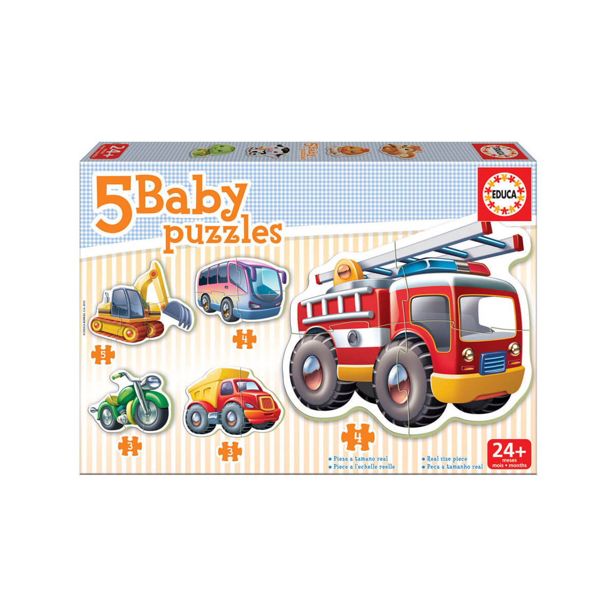5 puzzles de 2 a 4 piezas para construir auténticas figuras y jugar con ellas. Piezas más grandes, más gruesas y más fáciles de manipular: Estimulan la fijación de la atención así como el desarrollo de la psicomotricidad, la curiosidad e imaginación de los más pequeños.