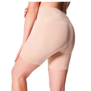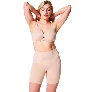 Oncore Mid-Thigh Short Pantalon Spanx, cómodo poder de escultura con menos volumen, panel de barriga adherido que se aplana, los paneles laterales ofrecen un adelgazamiento sin apretar y un movimiento fácil, las aberturas para las piernas permanecen invisibles debajo de la ropa y los bolsillos que mejoran el trasero evitan que el trasero se una sola.