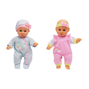 Muñeca suave de 30 cm con extremidades y manos de vinilo. ¡Presiona su barriguita para escuchar hasta 20 sonidos diferentes! Esta adorable bebé parlanchina es perfecta para juegos de rol y cuidado, ideal para fomentar la imaginación y el juego afectivo en niños y niñas.