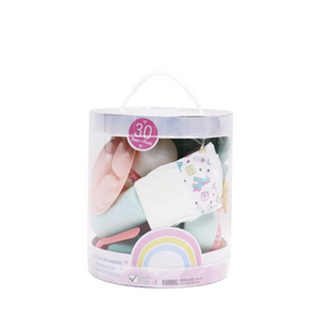 ¡Todo lo que tu muñeca necesita en un solo set! El Set de 30 accesorios para muñecaincluye una variedad de piezas esenciales para cuidar y jugar con tu bebé de juguete. Viene en un práctico recipiente tipo tacho, ideal para guardar y llevar a todas partes.