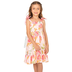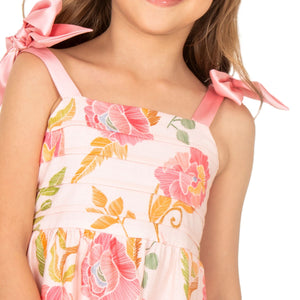 Vestido de algodón para niña con un estampado floral vibrante que resalta su encanto natural.