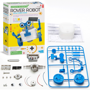 Un robot Rover inteligente que funciona tanto con batería como con energía solar. El robot Rover rueda con energía solar cuando el sol brilla. También se puede alimentar con batería cuando no hay luz solar. Incluye piezas de robot e instrucciones (idioma español no garantizado). Requiere 1 pila AAA (no incluida). Recomendado para niños de 5 años en adelante.