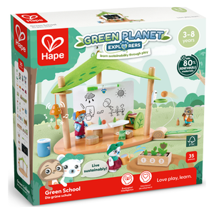Explora las maravillas de la energía verde y la conservación del agua con la elefanta Doris y su Escuela Verde. Parte de la gama Exploradores del Planeta Verde, los niños aprenden junto a Lana, la osa polar, y Marco, el mono, cómo cuidar el planeta. Con numerosos y emocionantes accesorios, este set es perfecto para el juego libre y educativo.