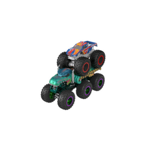 Los Monster Trucks Big Rigs de Hot Wheels transportan grandes personalidades sobre seis ruedas para vivir aventuras épicas. Cada camión die-cast a escala 1:64 captura el estilo y la personalidad de un personaje o criatura Monster Trucks favorito de los fans. Si le añadimos las seis enormes ruedas, ¡este camión también puede transportar un Monster Trucks HotWheels adicional con un gancho de remolque o en la plataforma! Los camiones adicionales se venden por separado. Los estilos, colores y decoraciones pueden variar. Producto surtido, se venden por separado.