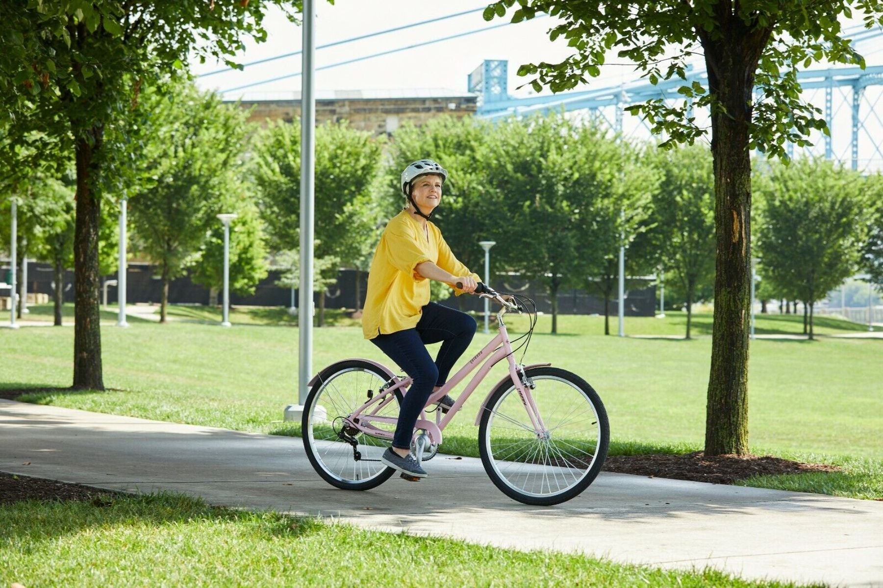 El diseño de su cuadro te mantiene erguido para un paseo relajado, cambios Shimano de 7 velocidades facilitan los cambios sobre la marcha, sillin ajustable a la altura facilmente y acolchado para mayor comodidad, frenado seguro y fiable, detalles elegantes como su color rosado, que combinan con sus puños y pedales.
