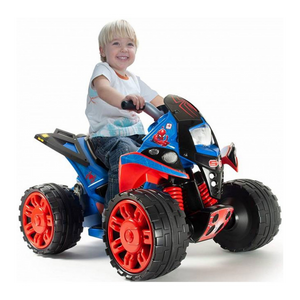 Deja que los pequeños disfruten creando aventuras acompañados del superhéroe Spiderman. Realizado con material de alta calidad, este quad es perfecto para que los peques disfruten recorriendo distintos terrenos y viviendo aventuras muy bien acompañados. Es de color azul y rojo, y dispone de unas grandes ruedas negras de plástico muy resistentes. Con un motor de 12V, alcanza una velocidad de 4 a 5 km/h simplemente pulsando el pedal que encontrarán en el reposapiés derecho. Dispone de un manillar para dirigir la marcha con mangos de goma, amortiguadores y un diseño ergonómico para que los pequeños se sientan cómodos al ir sentados. El entretenimiento perfecto para que los pequeños disfruten jugando de manera segura bajo la garantía de Injusa. La batería y el cargador están incluidos, se fabrica en España y cumple con las exigentes normativas de seguridad de la UE.