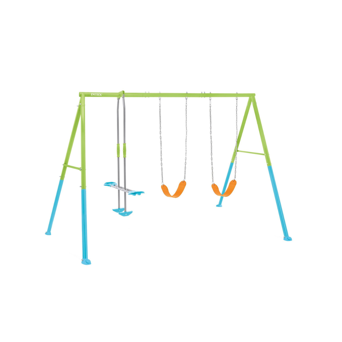 Este set de columpios incluye 4 asientos individuales para que los niños disfruten del aire libre al máximo. Con estructura metálica resistente y diseño seguro, es ideal para patios y jardines. Diversión garantizada para los más pequeños.