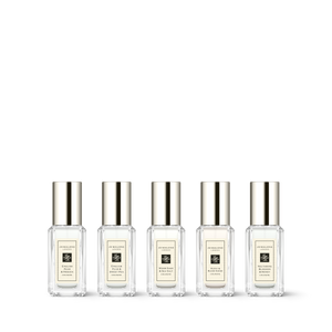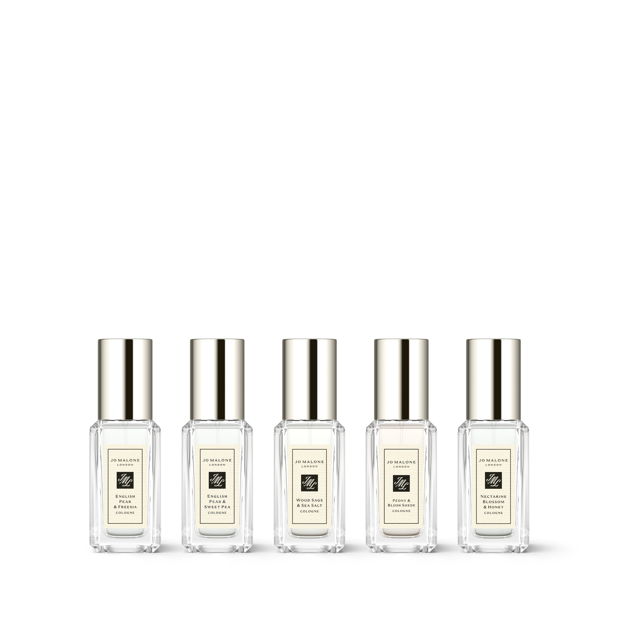 El regalo de la exploración de fragancias. Esta caja de regalo festiva contiene cinco perfumes atemporales de Jo Malone London en botellas de 9 ml, incluyendo el cítrico Lime Basil & Mandarin, el delicioso English Pear & Freesia y el fresco Wood Sage & Sea Salt. Cada uno se puede usar individualmente o combinarse entre sí para crear una armonía festiva.