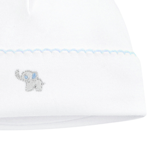 Completa el look de tu bebé con este delicado gorro tejido en 100 % algodón Pima peruano, reconocido por su suavidad excepcional y su capacidad de mantener la temperatura ideal sin irritar la piel. El diseño combina encanto y confort: tiene un tierno bordado de elefantito al frente. Perfecto para proteger la cabecita del bebé en cualquier estación.