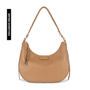 Este bolso hobo está hecho de cuero de vaca granulado. Tiene un único bolsillo principal con cremallera y dos bolsillos interiores a cada lado, uno simple y otro con cremallera. Este bolso se lleva al hombro. Dimensiones : 33 x 26 x 9.5 cm