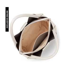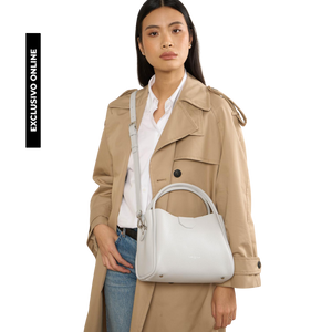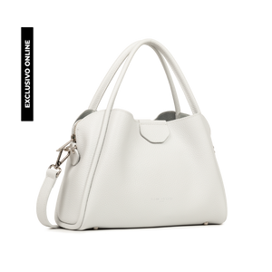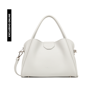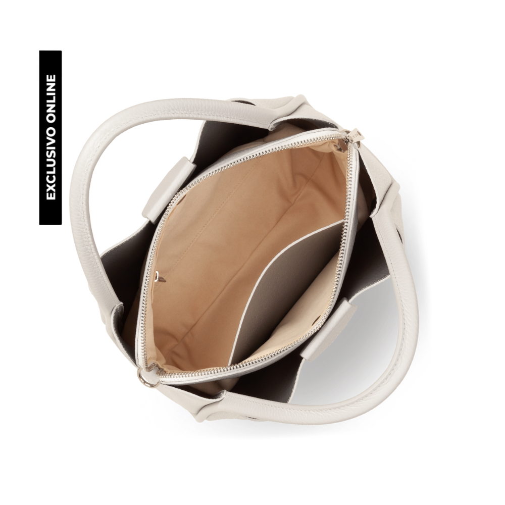 Este bolso de mano está confeccionado en cuero de vaca con textura granulada. Incluye dos bolsillos interiores simples que se cierran con imán, un gran compartimento con cremallera, así como un bolsillo interior simple y otro con cremallera. Se puede llevar en la mano, al hombro o cruzado.