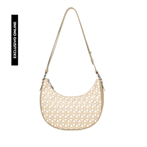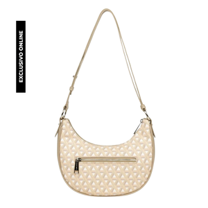 Este bolso Hobo está confeccionado en policloruro de vinilo. Tiene un bolsillo interior simple y un bolsillo exterior con cremallera.Posee asas cortas, ajustables y simples. Este bolso hobo se lleva al hombro o cruzado.                                                                                                                                                                 Dimensiones : 25 x 15 x 7 cm.                                                                                                                                     I