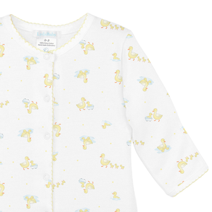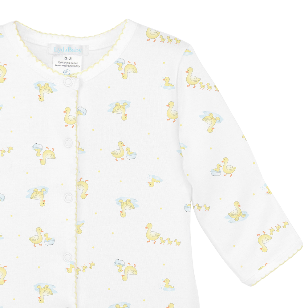 Inspirado en los momentos más dulces del baño, nuestro enterizo “Bath Time” está confeccionado en el más suave algodón Pima peruano, ideal para mantener la piel del bebé protegida y cómoda todo el día. Su diseño presenta encantadores estampados de una mamá pato y su patito en una bañera, distribuidos sutilmente por toda la prenda, evocando ternura y pureza.