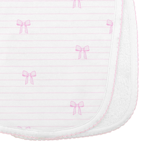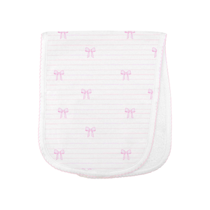La terminación en crochet rosado recorre todo el contorno de la babita, añadiendo un toque encantador.