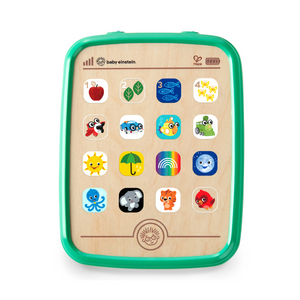 Esta tableta no es como las demás, es de madera y tiene diferentes funciones para el aprendizaje de los pequeños. ¡Simula una tableta de verdad! Pulsando las bonitas ilustraciones, los más pequeños descubrirán los diferentes sonidos. Además, cuenta con un toque mágico ¡no se necesitan botones! Es ideal para despertar la curiosidad de los más pequeños y estimular el sentido de la vista, el tacto y el oído. Idiomas disponibles: alemán, italiano e inglés.