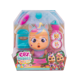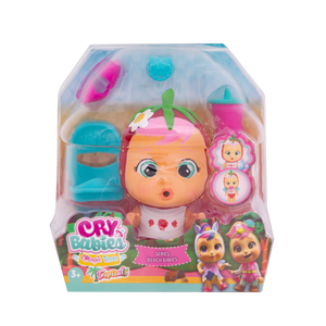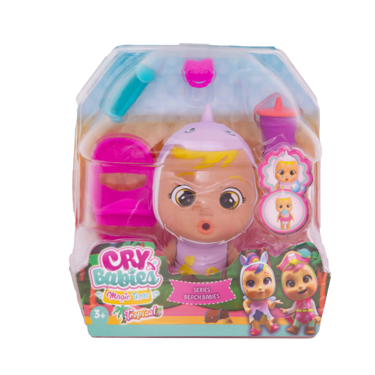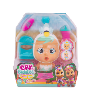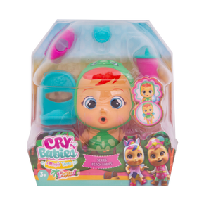 La nueva colección Beach Babies de Cry Babies Magic Tears está aquí como parte del nuevo tema Tropical World. Todos tus Cry Babies Magic Tears están vestidos y listos para ir a la playa con sus bonitos trajes de baño. ¡Hay más de 12 muñecas diferentes para coleccionar! Las cápsulas tienen forma de cabaña de playa, ábrela y descubre tu personaje misterioso ytodos los accesorios. Lloran lágrimas mágicas cuando presionas sus vientres.
