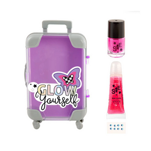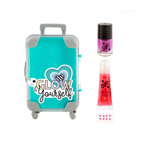 El mini beauty trolley es un conjunto portátil de belleza diseñado para que los niños puedan llevar y organizar sus productos de maquillaje y accesorios de manera divertida y práctica.
