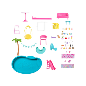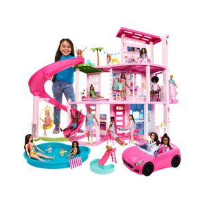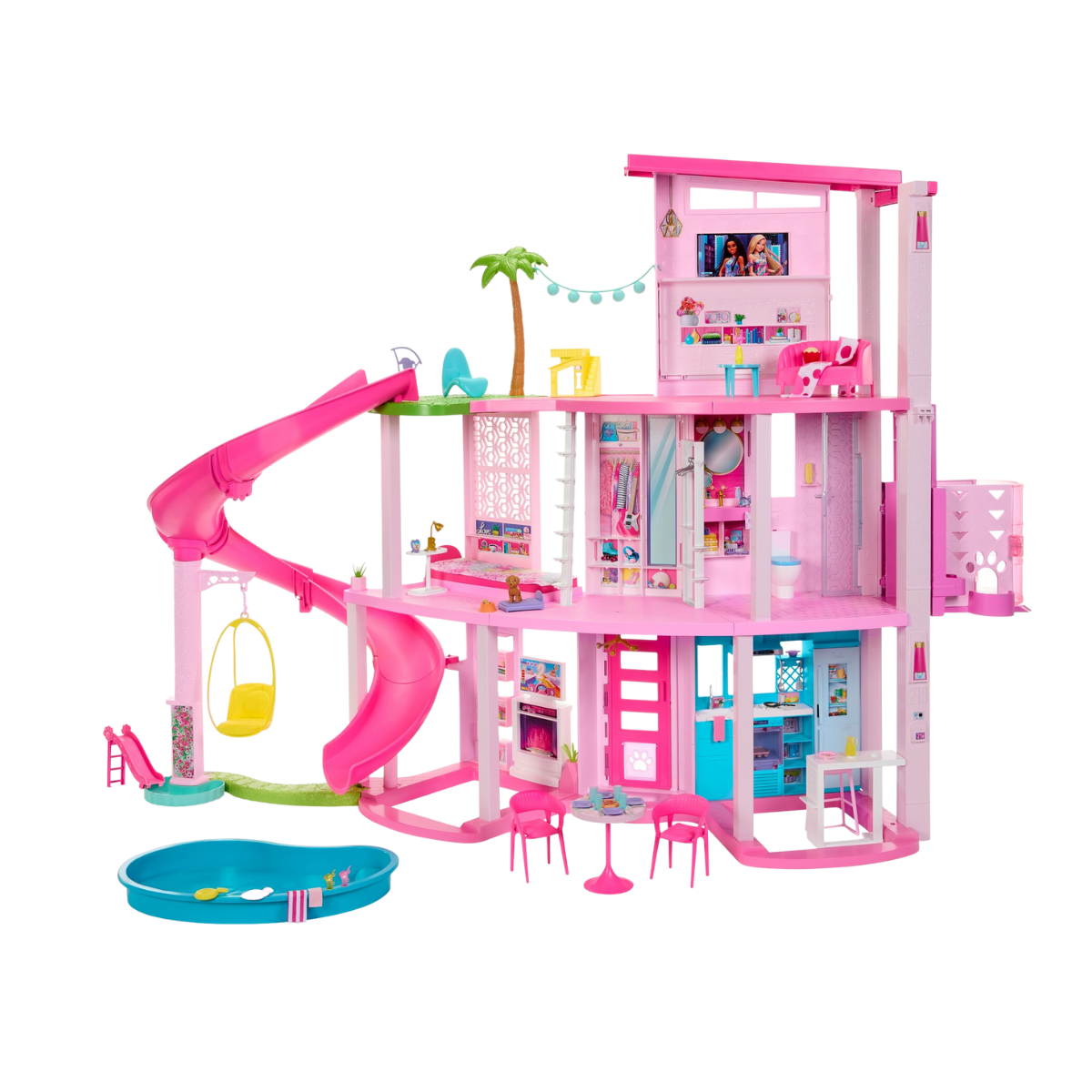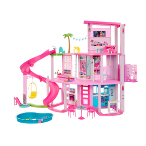 Las niñas pueden ser anfitrionas de la mejor fiesta en la piscina con la Casa de los Sueños de Barbie®. Esta casa de muñecas de lujo tiene el tobogán más alto de la serie Casa de los Sueños de Barbie® hasta la fecha, con un diseño en espiral de tres pisos para una diversión sinfín bajo el sol. Inspira 360° de juego con un amplio y espacioso primer piso, tres niveles y 10 áreas interiores y exteriores. El set de juego también incluye más detalles para mascotas que nunca, como un tobogán para perritos y una piscina donde los amigos peludos pueden jugar con Barbie®. Además, la habitación adicional del último piso sorprende con una transformación para que duerman cuatro muñecas en la Casa de los Sueños. Con más de75 accesorios y espacios personalizables que duplican la diversión, es un regalo excepcional para niñas de 3 años en adelante. Requiere montaje. No incluye muñecas. Los colores y las decoraciones pueden variar.