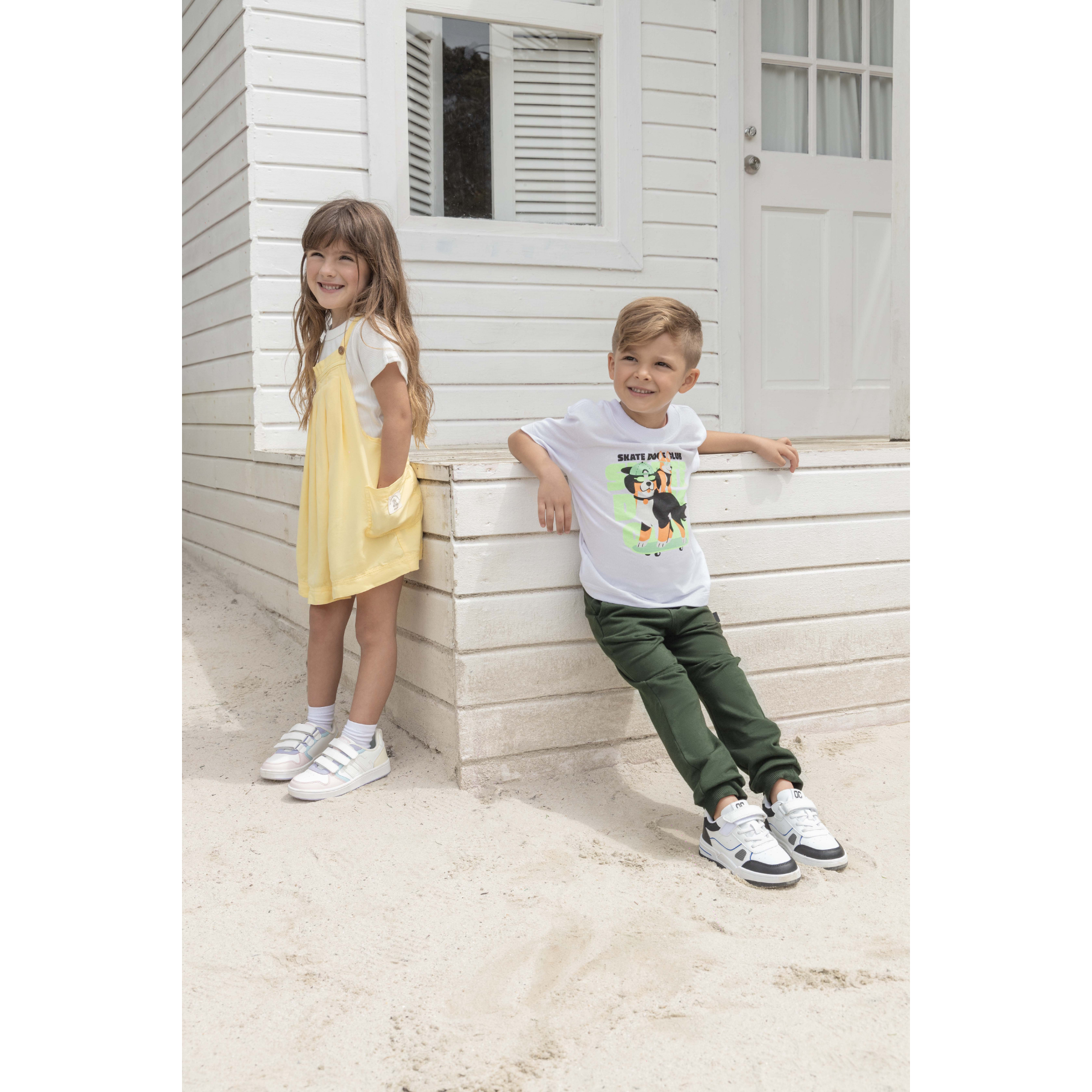 Conjunto en tejido de punto de camiseta manga corta con estampado en relieve + bermuda con cordón ajustable. Perfecto para días de juego y aventuras. ¡Comodidad y estilo en uno!