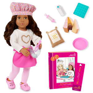 Set de muñeca y libro de 18 pulgadas: ¡Prepara delicias dulces e historias aún más dulces con la muñeca Paola de 18 pulgadas de Our Generation!