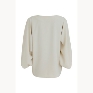 Blusa Arle perla, con manga larga y resorte para un leve ajuste a la medida que la deseas utilizar. Corte de mangas tipo globo y corte en v  en la parte delantera. Elaborada con 49% Acetato,49% Viscosa y 3% Elastano.