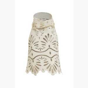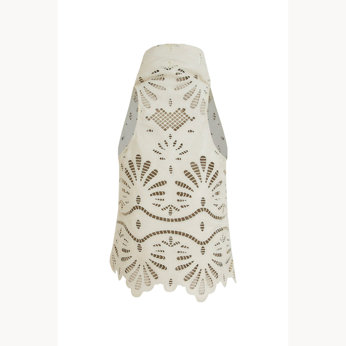 Blusa noche de lirios crema. Corto en tejido calado con diseño artesanal y delicado acabado. El protagonista es su cuello drapeado tipo tortuga, que aporta un aire sofisticado y moderno.