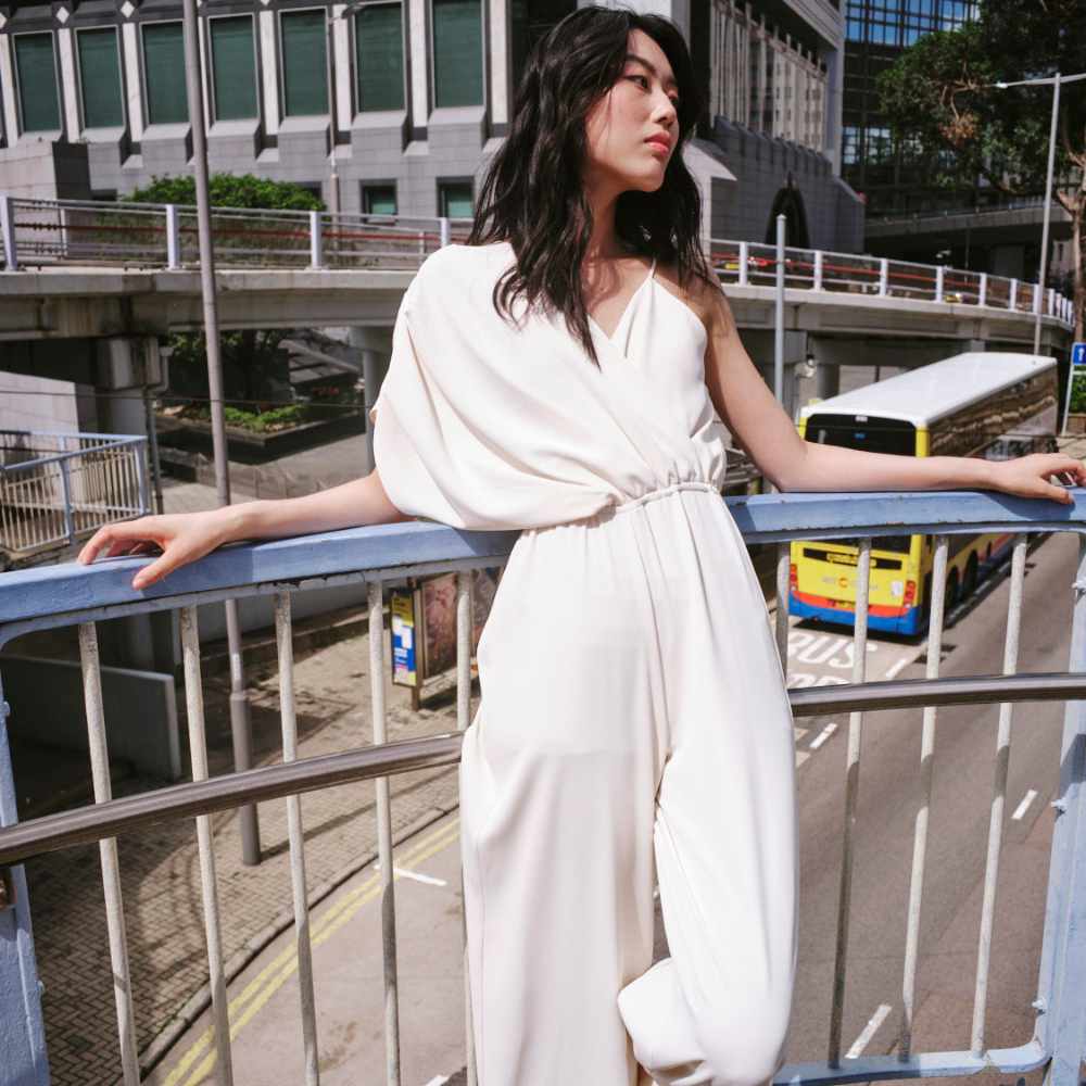 Enterizo espíritu del sol natural. confeccionado en un tejido fluido que aporta movimiento y elegancia. Su diseño asimétrico de un solo hombro, complementado con delicados drapeados en el escote delantero y posterior, resalta la feminidad con sutileza. La cintura elástica define la figura, mientras el largo amplio del pantalón estiliza la silueta, evocando una estética contemporánea y sofisticada. Fit regular. Material 97% Poliéster y 3% Elastano.
