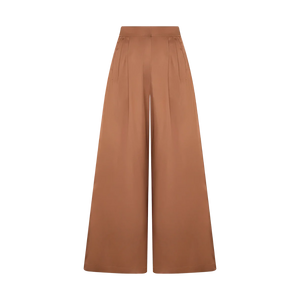 Pantalon ink orchid coffe. Este pantalón palazzo envuelve el cuerpo con una caída fluida que evoca movimiento y frescura en cada paso. Su acabado satinado aporta un brillo sutil y sofisticado que eleva cualquier look. Cuenta con bolsillos laterales y una silueta de talle alto que estiliza la figura. Fit amplio. Elaborado en 100% Viscosa.